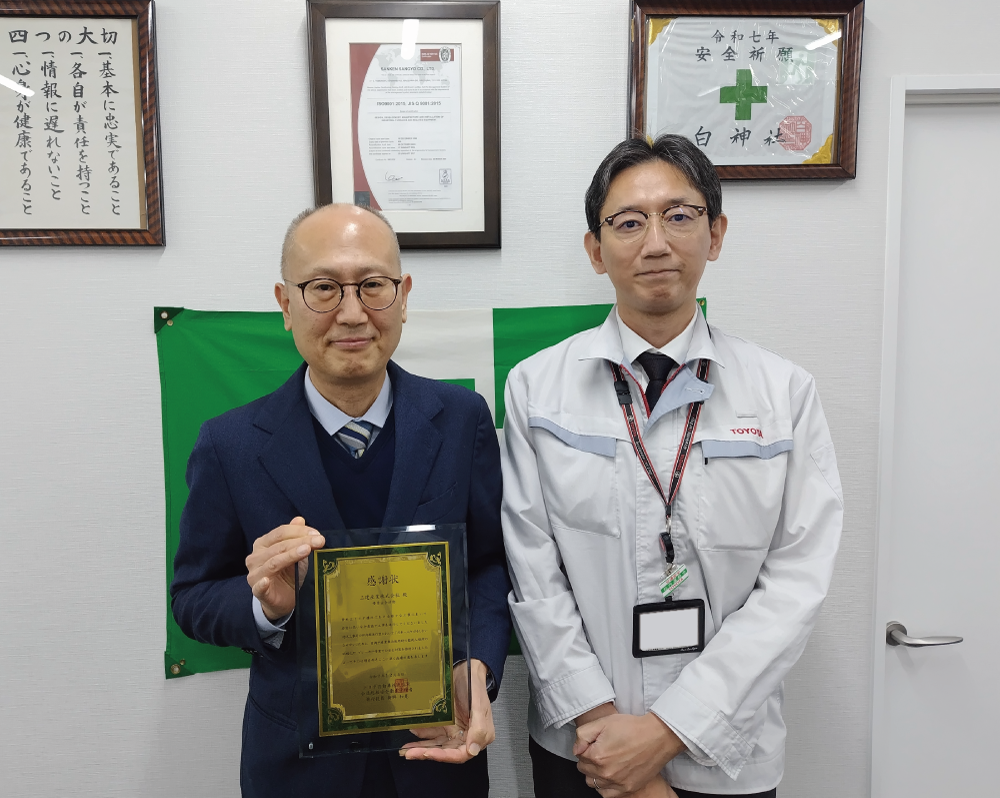 このたび、弊社業務における安全への取り組みが評価され、トヨタ自動車㈱様より安全表彰を受賞いたしましたのでお知らせします。